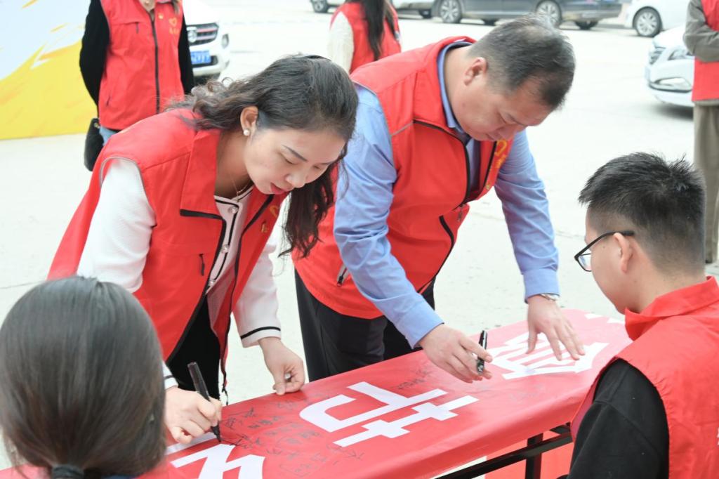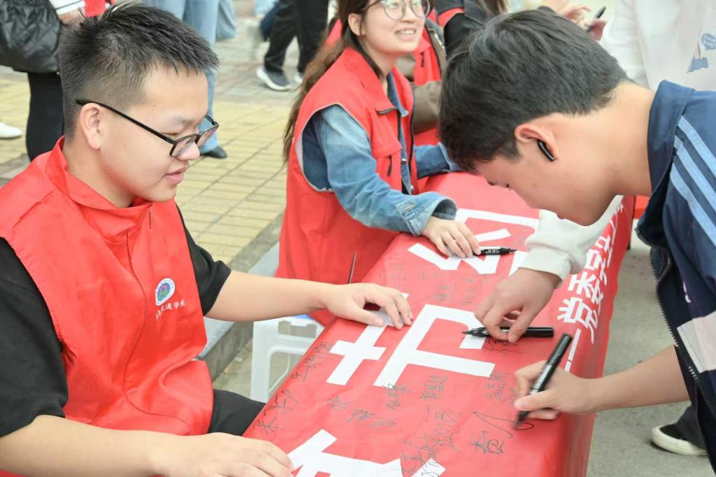 活动现场,志愿者们身着统一服装,精神饱满、面带微笑,热情引导往来师生积极参与粮食节约宣传活动。大家纷纷主动上前,在“粮食节约,人人有责”签名条幅上郑重签下自己的名字,以“签名立诺”这种特殊的方式,许下践行“光盘行动”、守护粮食安全的坚定承诺。