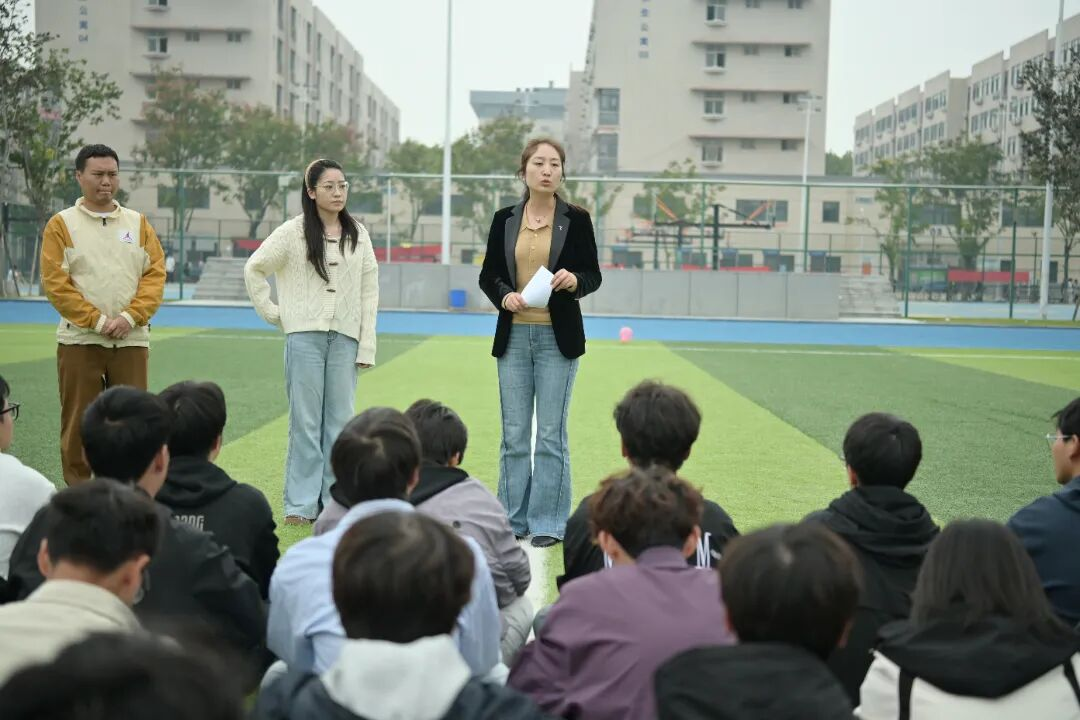 本次活动分设教室、操场两大区域,融合团队竞技与互动游戏等多种形式。在“名字接龙大挑战”中,同学们在接力复述中快速记忆同伴姓名,记错者即兴表演妙趣横生,迅速拉近了心理距离;五子棋对决环节,选手们沉着布局、见招拆招,尽显智慧锋芒;“企鹅漫步”活动中,参与者夹球摇摆前行的憨萌姿态引发阵阵欢笑;“逛三园”“报数游戏”则激发创意火花,展现出青年学子朝气蓬勃的青春面貌。随着“穿越彩虹”呼啦圈传递与“两人三足”接力赛的开启,活动气氛被推向高潮,队员们手手相牵、并肩协作,在速度与默契的较量中深刻体会团队力量。活动尾声,老师们为获胜队伍颁发奖品,并充分肯定全体同学的积极参与和出色表现。