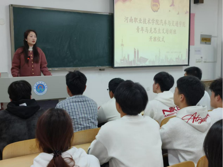 为深入学习贯彻习近平新时代中国特色社会主义思想,切实加强青年学生骨干的政治锻造与能力培养,10月23日,汽车与交通学院举行了2025年“青年马克思主义培训班”(以下简称“青马班”)开班仪式,学院团总支书记毛晓羽出席仪式,仪式由团总支副书记赵闯主持。