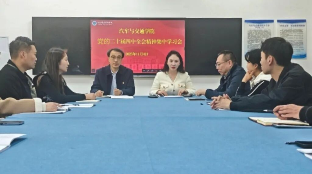 11月4日,汽车与交通学院在敏行楼216会议室召开党总支理论学习中心组(扩大)会议,专题学习党的二十届四中全会精神。会议由学院党总支书记房静主持,全体教职工参加学习。