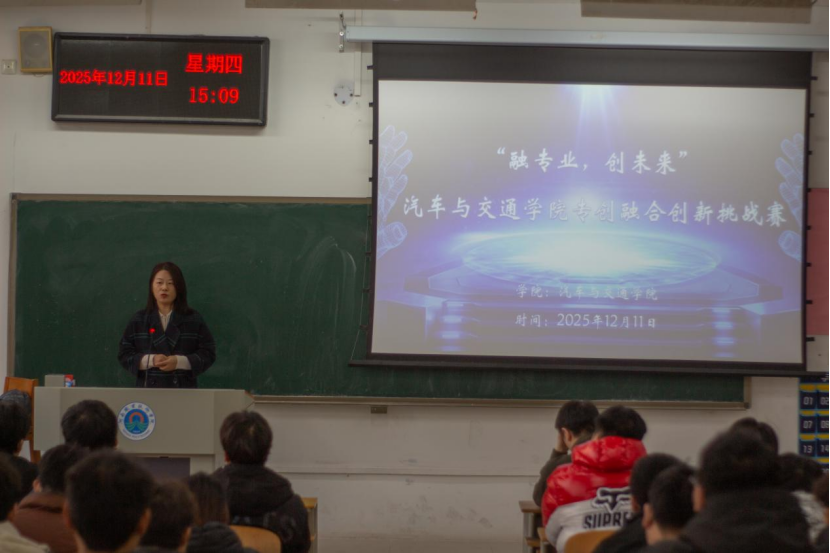为响应国家创新驱动发展战略,深化专创融合育人改革,搭建专业技能与创新思维的实践平台,12月11日,汽车与交通学院“融专业,创未来”专创融合创新挑战赛在明理楼1203教室正式拉开帷幕。学院党总支副书记王爱巧出席活动并作指导讲话。