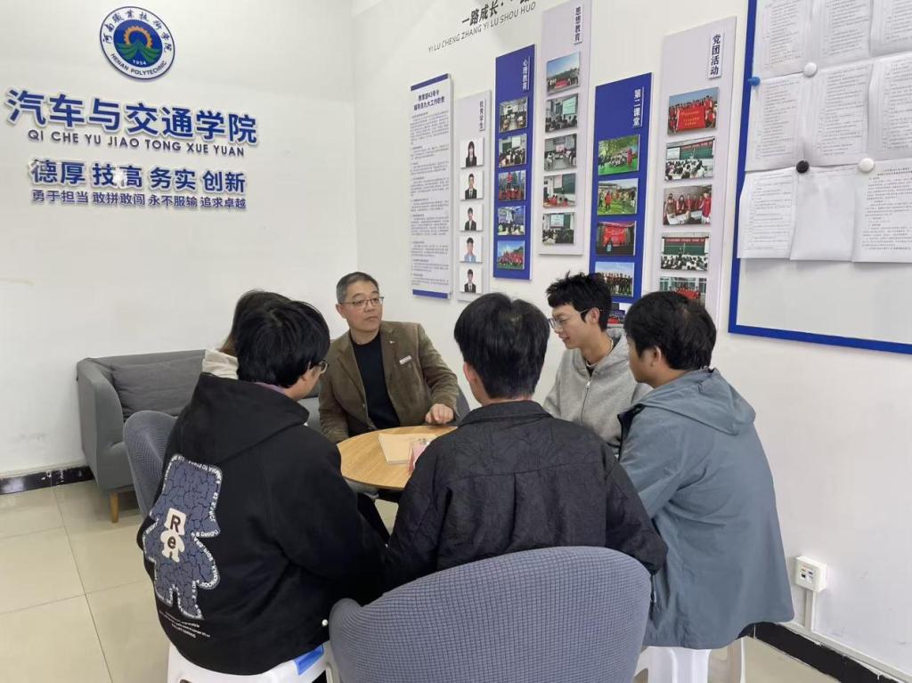 为帮助学生明晰职业规划、提升实习就业能力,切实解答升学与就业中的困惑,11月15日下午,汽车与交通学院汽车检测与维修技术教研室教师、创业培训师陈东锋在“一站式”学生社区,与学生代表开展了面对面的座谈交流活动。