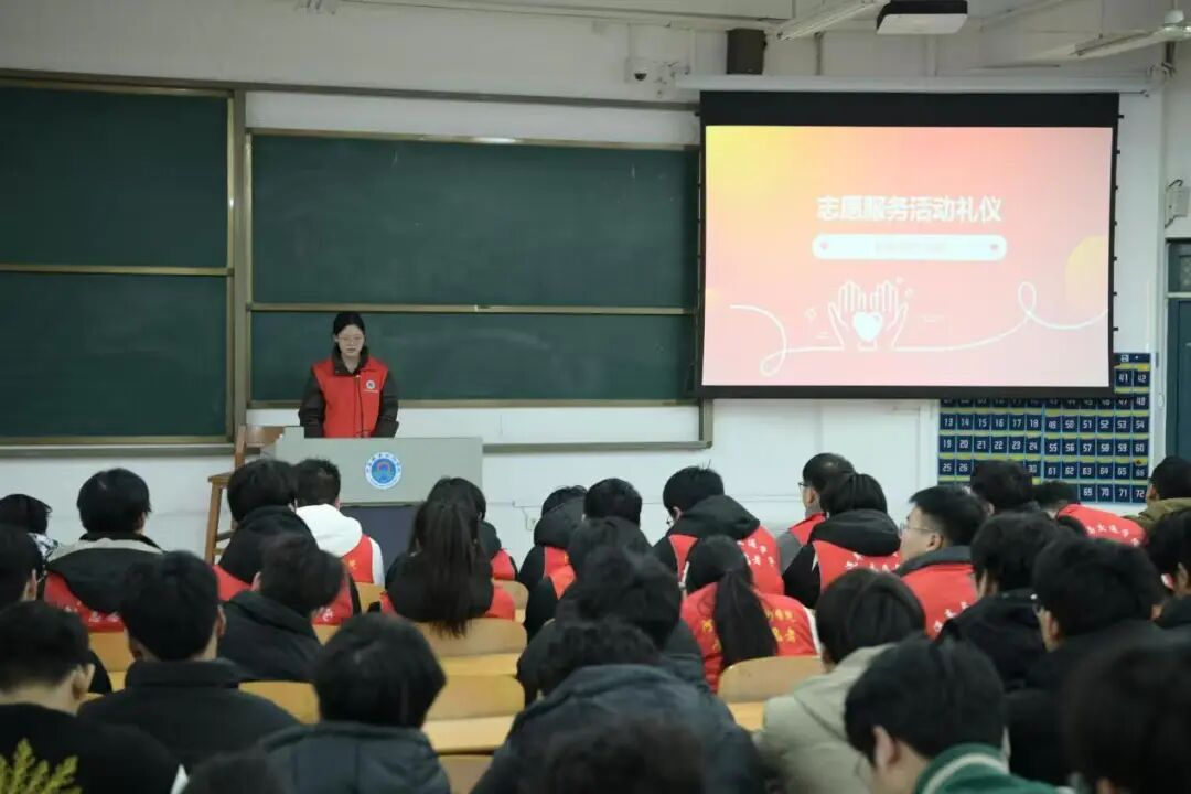 学生代表徐丰姣结合自身实践经验,分享了志愿服务中的礼仪规范、高效沟通技巧及突发情况应急处理方法,为同学们后续高效有序开展实践活动筑牢基础、指明方向。