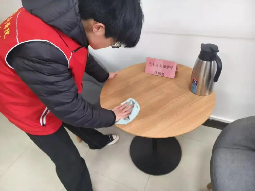 活动中,志愿者们身着红马甲,手持清洁工具,分工协作,行动有序。大家深入教学楼公共区域、办公室、走廊窗台及校园户外环境,细致擦拭桌面灰尘,清理门窗污渍,规整公共物品,不放过任何一个卫生死角。志愿者们以实际行动践行雷锋精神,用汗水擦亮校园每一个角落,展现出青年学子吃苦耐劳、乐于奉献的精神风貌。