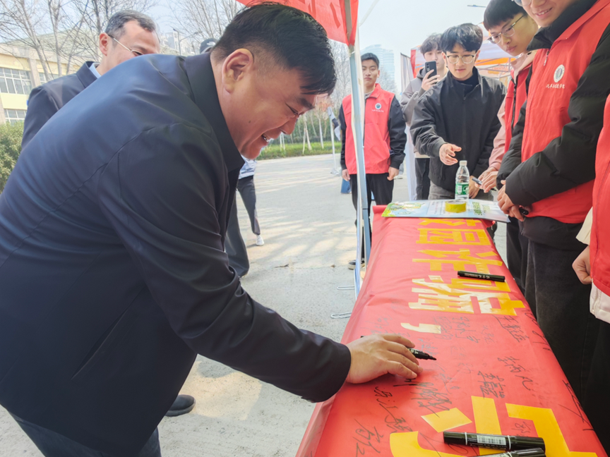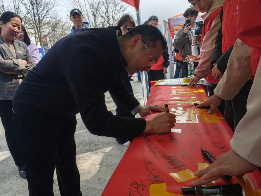 为迎接“3·15”国际消费者权益日,增强广大师生的消费维权意识与反诈防范能力,营造安全、理性、文明的校园消费环境,3月12日,汽车与交通学院在为天食府门前开展“守‘3·15’初心,筑反诈防线”主题宣传活动。校党委副书记、工会主席田华,副校长朱永宽参加活动并参与签名,汽车与交通学院党总支书记及各位辅导员参与此次活动。