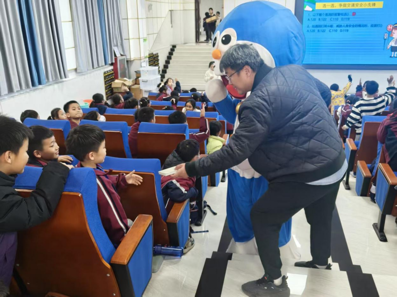 活动现场,志愿者们手持卡通玩偶活力登场,瞬间点燃了孩子们的参与热情。宣讲内容围绕小学生日常出行场景,将枯燥的交通规则转化为生动案例与趣味问答。志愿者们通过图片讲解交通标志、情景模拟安全过马路等互动方式,让孩子们在沉浸式体验中学习交通安全知识。趣味问答环节气氛尤为热烈,孩子们踊跃举手、积极作答,争相分享自己掌握的安全常识。志愿者们及时给予肯定与鼓励,并为答题学生送上精美小礼品,教室里掌声、笑声此起彼伏,交通安全理念在轻松愉快的氛围中深入人心。