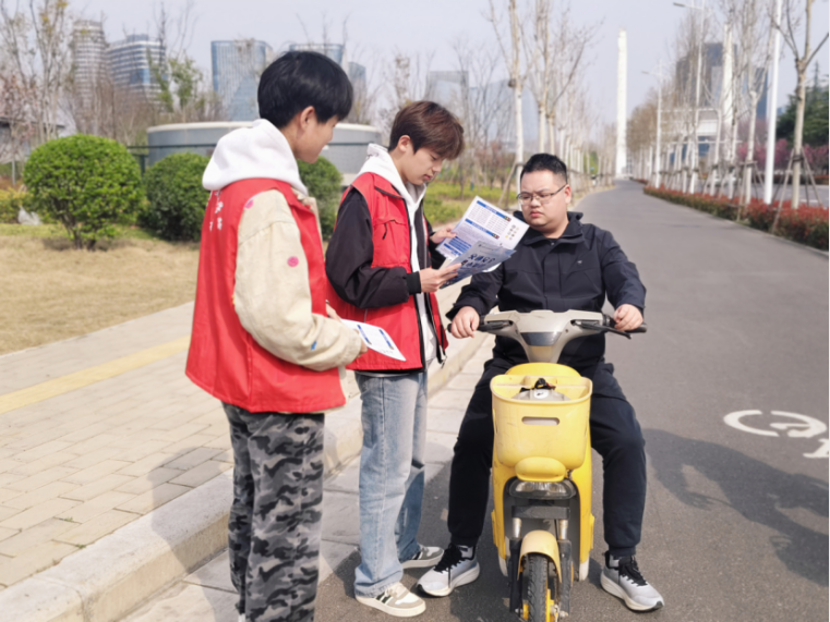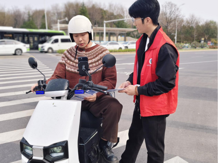 活动当天,学院师生组建多支志愿服务队,分赴校园周边主要路口、临近商圈路段开展志愿服务活动。志愿者们身着志愿服装、佩戴工作牌,以饱满的热情投入到交通疏导与安全宣传工作中。针对校园周边车流、人流密集的特点,志愿者们有序引导非机动车与机动车分道通行,耐心劝导电动车骑乘人员佩戴安全头盔,纠正非机动车逆行等不文明交通行为。同时,志愿者向过往非机动车驾驶人和行人发放交通安全宣传手册,结合日常出行中的典型案例,细致讲解交通法规,重点普及电动车安全出行知识,从车速控制、车辆规范停放、雨天出行防护等方面进行详细的宣传,将交通安全理念传递到每一位路人心中。志愿者们耐心细致的服务,赢得了市民的广泛认可与一致好评。