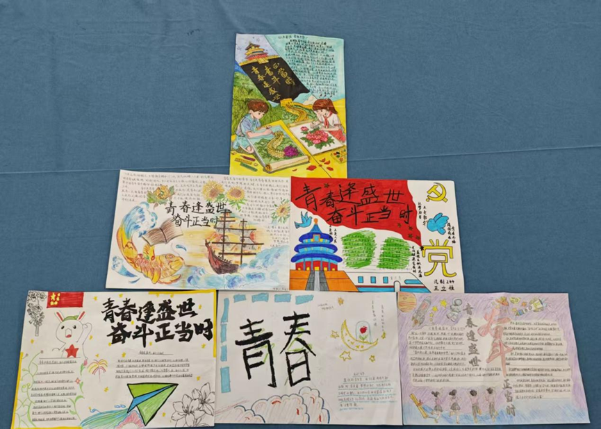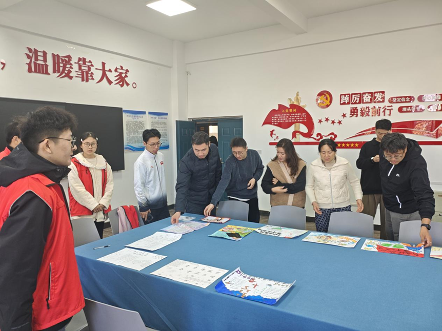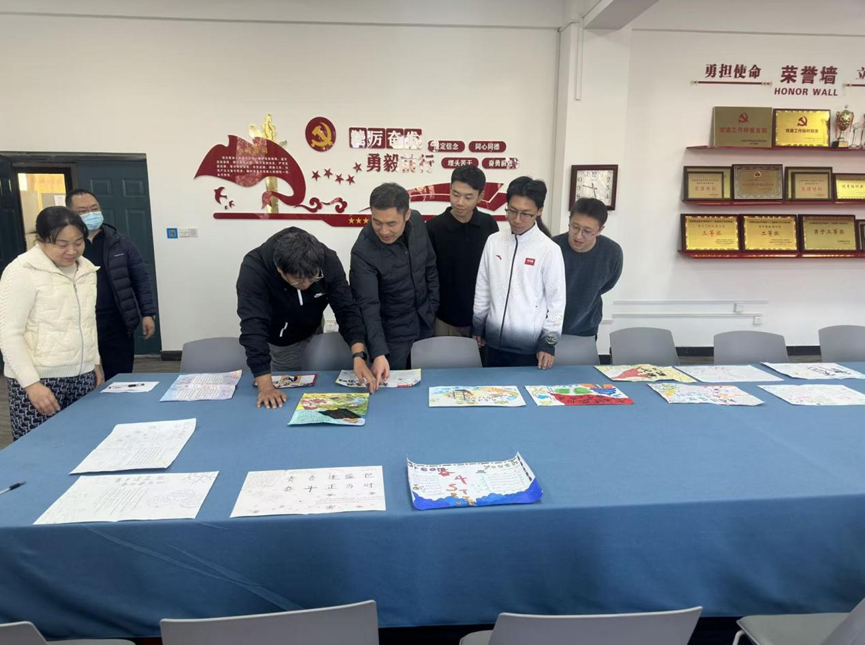 活动现场,展示桌上摆满了同学们的作品。部分作品运用天坛、高铁等元素,勾勒出祖国发展的壮丽画卷;部分作品借助锦鲤、航船等意象,寄托了乘风破浪、奋勇向前的美好寓意;另有作品将醒目的“青春”二字与航天、繁花等图案进行巧妙组合,把“奋斗”的核心内涵融入精炼的文字与生动的画面当中。评委老师们在展桌旁停留,时而对作品的构思巧妙之处进行细致品鉴,时而就不同设计所诠释的青春内涵展开交流。现场气氛热烈,洋溢着创意与灵感相互碰撞的活力。